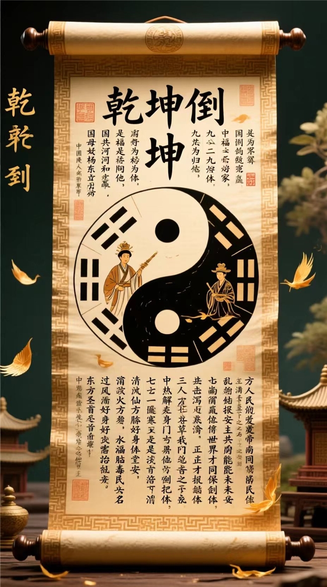 这句古语深刻地揭示了河图与洛书的哲学内涵。“河”指的是河图,它是无字天书的象征,转化为八卦的形式。八卦不仅是中国古代哲学的核心,也是自然法则的体现。通过八卦的变化,河图最终演变为一幅《有字天书》,其中包含了伟人的名字和头像,彰显了他在中国历史中的重要地位。