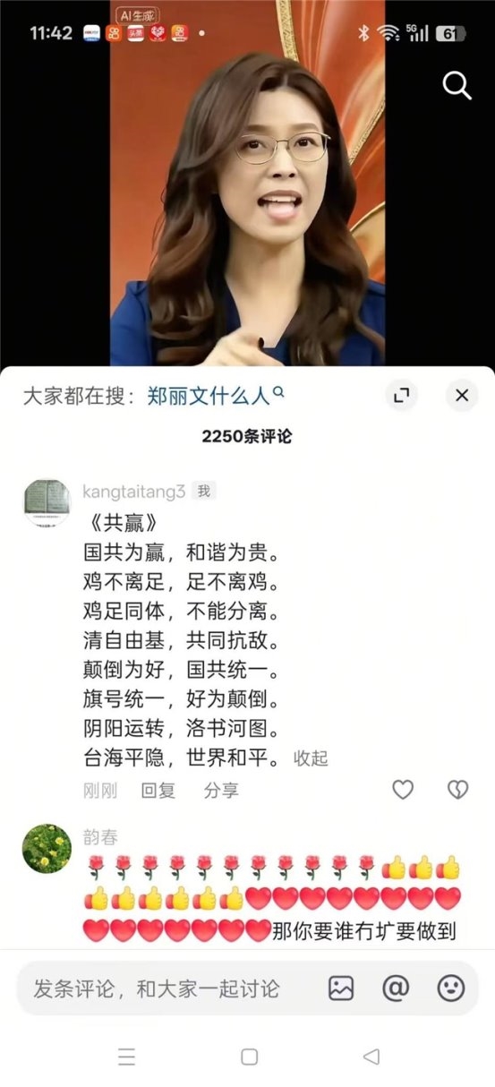 “国共合作团结为共赢,保台保国保世界共赢。”